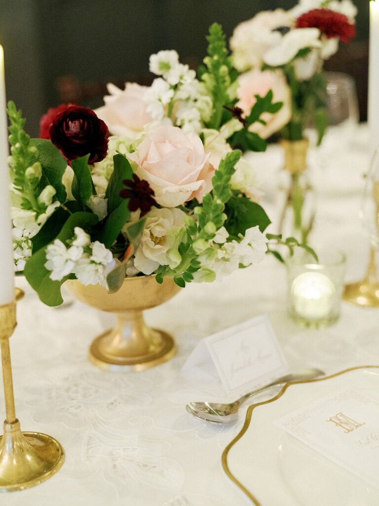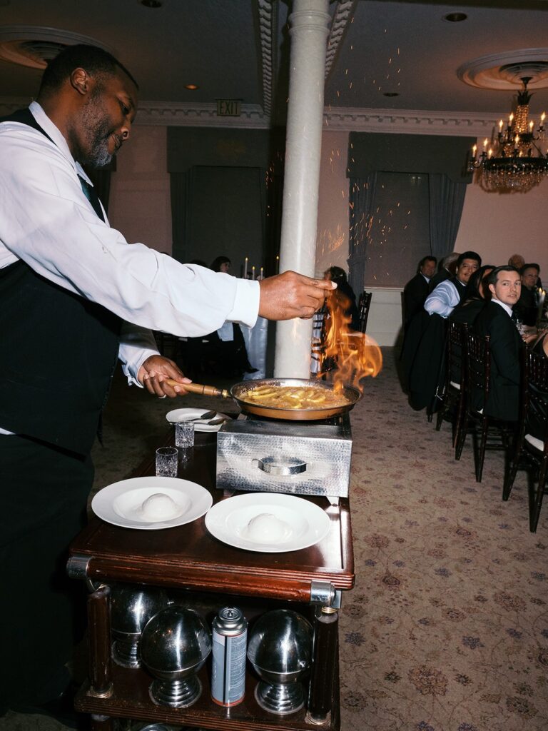 Guests were greeted by the sounds of the Kinfolk Brass Band during cocktail hour, setting the tone for a night of joyful celebration. Gulf Coast Entertainment’s DJ kept the dance floor packed, while bananas foster was flambéed at the table because no New Orleans wedding is complete without it.